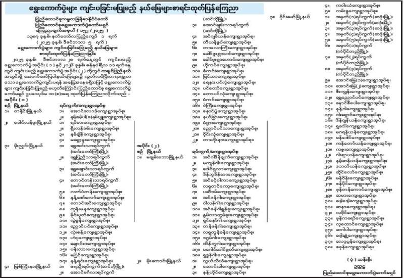 ရွေးကောက်ပွဲများ ကျင်းပခြင်းမပြုမည့် နယ်မြေများ စာရင်းထုတ်ပြန်ကြေညာ