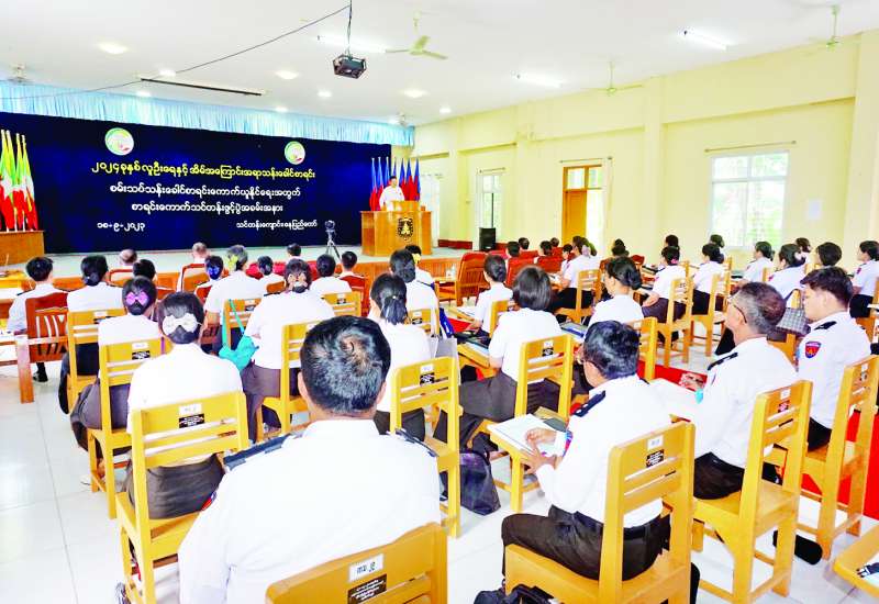 ၂၀၂၄ ခုနှစ် လူဦးရေနှင့်အိမ်အကြောင်းအရာ သန်းခေါင်စာရင်းကောက်ယူခြင်းလုပ်ငန်း၏ ကြိုတင်ပြင်ဆင်ခြင်းလုပ်ငန်း ဆောင်ရွက်မှုအနေဖြင့် ၂၀၂၃ ခုနှစ် စမ်းသပ်သန်းခေါင်စာရင်း ကောက်ယူနိုင်ရေးအတွက် စာရင်းကောက်သင်တန်းဖွင့်ပွဲကို ယနေ့နံနက် ၁၀ နာရီက နေပြည်တော်ရှိ လူဝင်မှုကြီးကြပ်ရေးနှင့်ပြည်သူ့အင်အား သင်တန်းကျောင်း၌ ကျင်းပရာ ဒုတိယဝန်ကြီး ဒေါက်တာမျိုးသန့်၊ အမြဲတမ်းအတွင်းဝန် ဦးဝင်းဇော်အောင်နှင့် ညွှန်ကြားရေးမှူးချုပ်များ၊ တာဝန်ရှိသူများ၊ သင်တန်းနည်းပြများနှင့် သင်တန်းသားသင်တန်းသူများ တက်ရောက်ကြသည်။