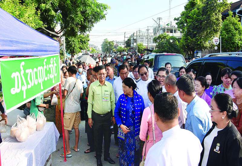 ဆိုင်ကလုန်းမုန်တိုင်း (မိုခါ) တိုက်ခတ်မှုကြောင့် မုန်တိုင်းဒဏ်သင့် ဒေသခံပြည်သူများနှင့် ဌာနဆိုင်ရာဝန်ထမ်းများ၏ စားသောက်ရေးအဆင်ပြေစေရန်နှင့် မိမိတို့အလိုရှိရာ စားသောက်ကုန်ပစ္စည်းများကို ဈေးနှုန်းသက်သာစွာဖြင့် ဝယ်ယူစားသောက်နိုင်ရေးအတွက် အနောက်ပိုင်းတိုင်းစစ်ဌာနချုပ်၊ နယ်မြေခံတပ်မတော်သားများနှင့် တာဝန်ရှိသူများက နေ့စဉ်ရောင်းချပေးလျက်ရှိသည်။