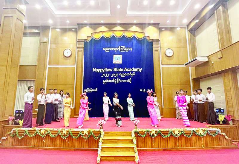 အနာဂတ်မြန်မာနိုင်ငံတော်တွင် အားကိုးအားထားပြုထိုက်သည့် လူ့စွမ်းအားအရင်းအမြစ်များ ပေါ်ထွန်းလာရေးကို ရည်ရွယ်၍ Naypyitaw State Academy ၏ ဗလငါးတန်ဖွံ့ဖြိုးရေး လူငယ်သီတင်းပတ် (Youth Week) အစီအစဉ်အနေဖြင့် လူငယ်များ မိတ္တဗလနှင့် ကာယဗလပြည့်စုံစေရေးအတွက် ၂၀၂၂-၂၀၂၃ ပညာသင်နှစ် နှုတ်ဆက်ပွဲ (Farewell) နှင့် Physical Fitness Dance သင်တန်းဆင်းပွဲကို ယနေ့မွန်းလွဲ ၁ နာရီခွဲ တွင် Naypyitaw State Academy ဘက်စုံ ခန်းမ၌ ကျင်းပသည်။