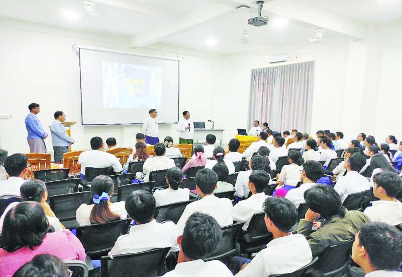 MSME ကဏ္ဍတွင် အလုပ်အကိုင်အခွင့်အလမ်းများရရှိရေး၊ MSME လုပ်ငန်းများဖွံ့ဖြိုးတိုးတက်ရေး၊ စွန့်ဦးတီထွင်မှုများဆောင်ရွက်နိုင်ရေး ဆွေးနွေးပွဲကို ယနေ့နံနက်ပိုင်းတွင် Naypyitaw State Polytechnic University သင်တန်းခန်းမ၌ကျင်းပရာ စက်မှုဝန်ကြီးဌာန ပြည်ထောင်စုဝန်ကြီး ဒေါက်တာချာလီသန်း၊ သိပ္ပံနှင့်နည်းပညာဝန်ကြီးဌာန ပြည်ထောင်စုဝန်ကြီး ဒေါက်တာမျိုးသိန်းကျော်၊ ဌာနဆိုင်ရာတာဝန်ရှိသူများ၊ Naypyitaw State Polytechnic University ပါမောက္ခချုပ်၊ ဆရာဆရာမများ၊ ကျောင်းသား ကျောင်းသူများ၊ MSME လုပ်ငန်းရှင်များနှင့် တာဝန်ရှိ သူများ တက်ရောက်ကြသည်။
