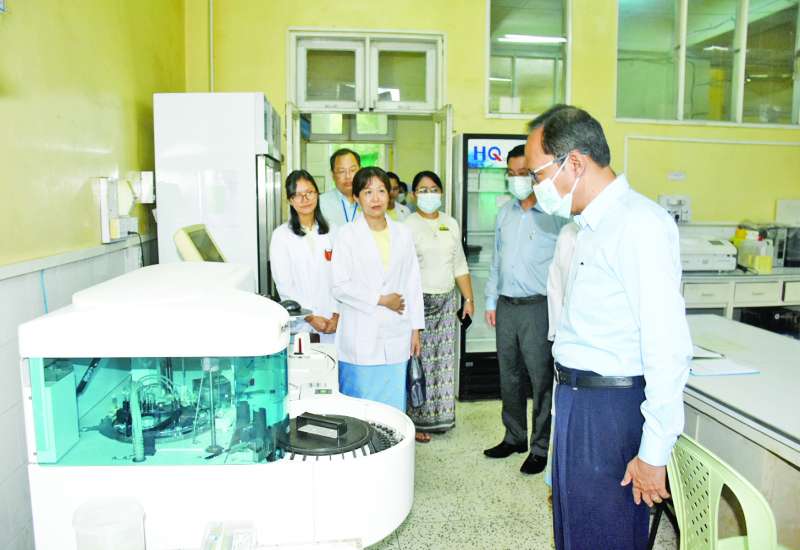 ကျန်းမာရေးဝန်ကြီးဌာန ပြည်ထောင်စုဝန်ကြီး ဒေါက်တာသက်ခိုင်ဝင်း၊ ညွှန်ကြားရေးမှူးချုပ်များနှင့် တာဝန်ရှိသူများသည် ယနေ့မွန်းလွဲပိုင်းတွင် ဗဟိုအမျိုးသမီးဆေးရုံကြီး - ရန်ကုန်သို့ သွားရောက်၍ ကုသရေးလုပ်ငန်းများ ဆောင်ရွက်မှုအခြေအနေကို ကြည့်ရှုစစ်ဆေးသည်။