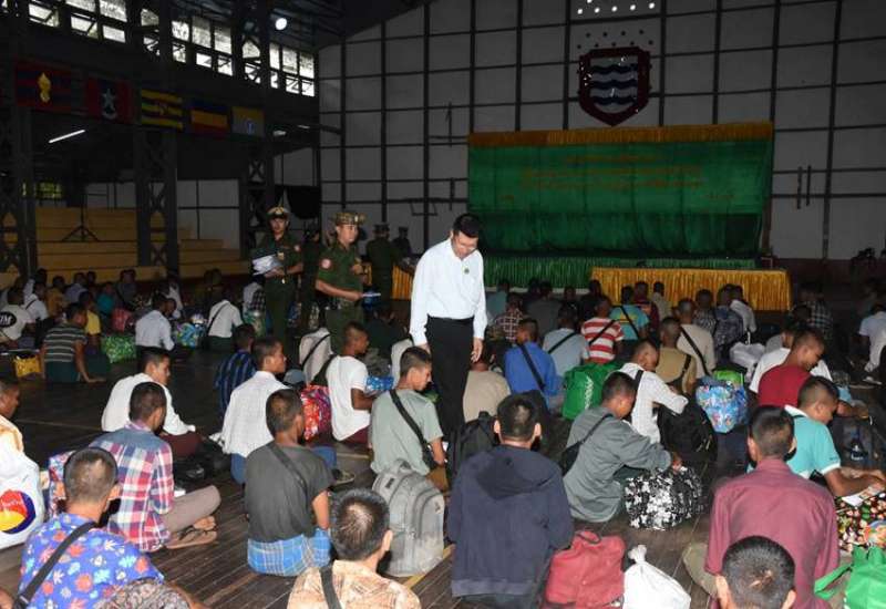 ဧရာဝတီတိုင်းဒေသကြီးအတွင်းမှ ပြည်သူ့စစ်မှုထမ်းသင်တန်း အမှတ်စဉ် (၁၆) သို့ တက်ရောက်မည့် နိုင်ငံ့သားကောင်းရတနာများအား ဧရာဝတီတိုင်းဒေသကြီး ဝန်ကြီးချုပ်ဦးတင်မောင်ဝင်းနှင့် အနောက်တောင်တိုင်းစစ်ဌာနချုပ်မှ တာဝန်ရှိသူများက ပုသိမ်တပ်နယ်အားကစားခန်းမ၌ သွားရောက်တွေ့ဆုံသည်။