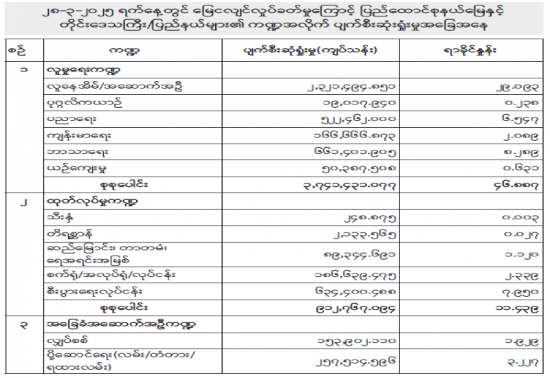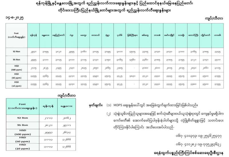ရန်ကုန်မြို့နှင့် မန္တလေးမြို့အတွက် ရည်ညွှန်းလက်ကားဈေးနှုန်းများနှင့် ပြည်ထောင်စုနယ်မြေ နေပြည်တော်၊ တိုင်းဒေသကြီး/ပြည်နယ် မြို့တော်များအတွက် ရည်ညွှန်းလက်လီဈေးနှုန်းများ