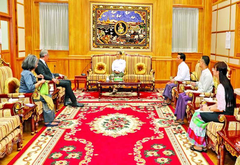 လူဝင်မှုကြီးကြပ်ရေးနှင့် ပြည်သူ့အင်အားဝန်ကြီးဌာန ပြည်ထောင်စုဝန်ကြီး ဦးမြင့်ကြိုင်သည် မြန်မာနိုင်ငံဆိုင်ရာ ကုလသမဂ္ဂယာယီဌာနေညှိနှိုင်းရေးမှူး/ လူသားချင်းစာနာထောက်ထားမှုဆိုင်ရာ ယာယီညှိနှိုင်းရေးမှူးနှင့် ကုလသမဂ္ဂကမ္ဘာ့စားနပ်ရိက္ခာ အစီအစဉ် (WFP)၏ မြန်မာနိုင်ငံဆိုင်ရာဌာနေကိုယ်စားလှယ်ဖြစ်သူ Mr. Michael Dunford နှင့်အဖွဲ့အား ယနေ့နံနက် ၁၀ နာရီတွင် နေပြည်တော်ရှိ အဆိုပါဝန်ကြီးဌာန ပြည်ထောင်စုဝန်ကြီး၏ဧည့်ခန်းမ၌ လက်ခံတွေ့ဆုံသည်။