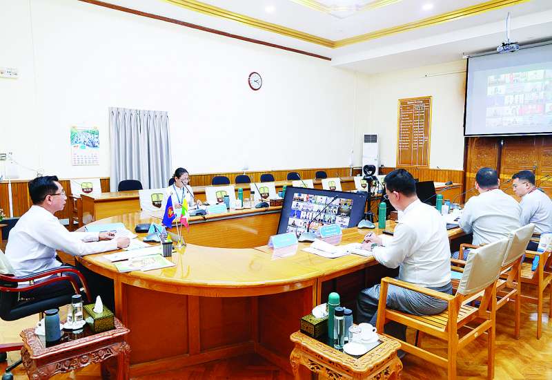 အာဆီယံဒေသတွင်း စီးပွားရေးပေါင်းစည်းဆက်နွှယ်မှု ပိုမိုအားကောင်းလာစေရေးအတွက် အာဆီယံနိုင်ငံဖြတ်ကျော် လျှပ်စစ်ဓာတ်အား ချိတ်ဆက်ရောင်းဝယ်မှုစီမံကိန်းများဆိုင်ရာ ဘဏ္ဍာငွေအထောက်အပံ့ရရှိရေး လုပ်ထုံးလုပ်နည်းများနှင့်စပ်လျဉ်းသော ကဏ္ဍစုံဝန်ကြီးအဆင့်အစည်းအဝေးကို ယနေ့မွန်းလွဲပိုင်းတွင် အာဆီယံစွမ်းအင်ဝန်ကြီးများ အစည်းအဝေး၏ အလှည့်ကျဥက္ကဋ္ဌဖြစ်သူ မလေးရှားနိုင်ငံက ကြီးမှူး၍ Video Conferencing ဖြင့်ကျင်းပရာ မြန်မာနိုင်ငံ၏ အာဆီယံစီးပွားရေးဝန်ကြီး ရင်းနှီးမြှုပ်နှံမှုနှင့် နိုင်ငံခြားစီးပွားဆက်သွယ်ရေးဝန်ကြီးဌာန ပြည်ထောင်စုဝန်ကြီး ဒေါက်တာဝါဝါမောင်၊ စွမ်းအင်ဝန်ကြီးဌာန ပြည်ထောင်စုဝန်ကြီး ဦးကိုကိုလွင်နှင့် ဘာသာရပ်ဆိုင်ရာကဏ္ဍများမှ တာဝန်ရှိသူများက သက်ဆိုင်ရာရုံးဌာနများမှ Video Conferen-cing စနစ်ဖြင့် တက်ရောက်ကြသည်။
