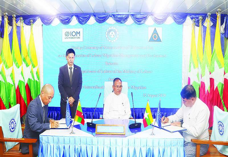 အလုပ်သမားဝန်ကြီးဌာန ပြည်ထောင်စုဝန်ကြီး ဦးအောင်ကျော်ဟိုးသည် အပြည်ပြည်ဆိုင်ရာ ရွှေ့ပြောင်းသွားလာရေးအဖွဲ့ (IOM) မှ အာရှနှင့် ပစိဖိတ်ဒေသဆိုင်ရာ ညွှန်ကြားရေးမှူး Mr. Iori KATO အား ယနေ့နံနက်ပိုင်းတွင် နေပြည်တော်ရှိ အလုပ်သမားဝန်ကြီးဌာန ယာယီရုံးအဆောက်အအုံ ဧည့်ခန်းမ၌ လက်ခံတွေ့ဆုံသည်။