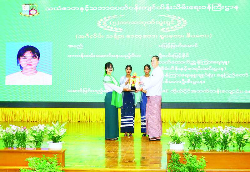 ၂၀၂၄ - ၂၀၂၅ ပညာသင်နှစ် တက္ကသိုလ်ဝင်စာမေးပွဲတွင် ထူးချွန်စွာအောင်မြင်ခဲ့ကြသော သယံဇာတနှင့် သဘာဝပတ်ဝန်းကျင်ထိန်းသိမ်းရေးဝန်ကြီးဌာနရှိ ဝန်ထမ်းများ၏ သားသမီးများအား ဂုဏ်ပြုချီးမြှင့်ပွဲအခမ်းအနားကို ယနေ့နံနက်ပိုင်းက နေပြည်တော် တက္ကသိုလ်များနယ်မြေ(ရေဆင်း)ရှိ သစ်တောနှင့်ပတ်ဝန်းကျင်ဆိုင်ရာတက္ကသိုလ် ဘွဲ့နှင်းသဘင်ခန်းမ၌ကျင်းပရာ ပြည်ထောင်စုဝန်ကြီး ဦးခင်မောင်ရီ၊ ဒုတိယဝန်ကြီး ဦးမင်းသူ၊ တာဝန်ရှိသူများ၊ ဂုဏ်ထူးရ ကျောင်းသား ကျောင်းသူများနှင့် မိဘများတက်ရောက်ကြသည်။