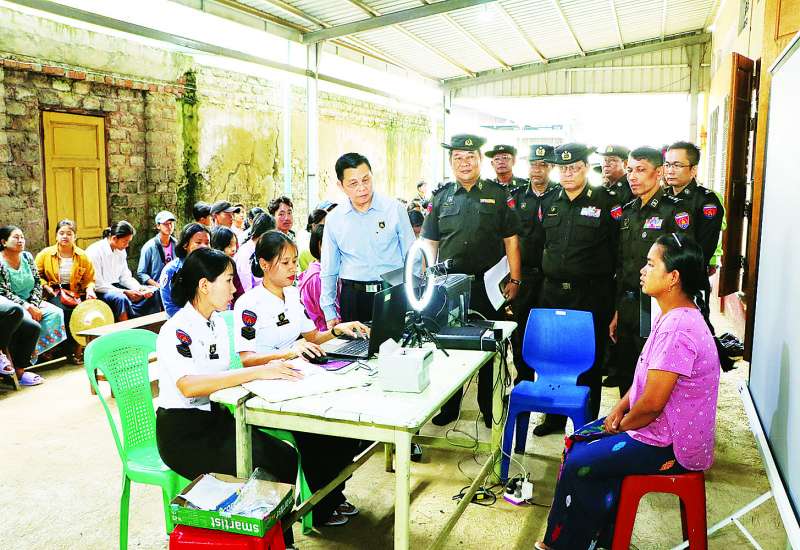 လူဝင်မှုကြီးကြပ်ရေးနှင့်ပြည်သူ့အင်အားဝန်ကြီးဌာန ပြည်ထောင်စုဝန်ကြီး ဦးမြင့်ကြိုင်သည် ယနေ့နံနက်ပိုင်းက ရှမ်းပြည်နယ် (မြောက်ပိုင်း) နောင်ချိုမြို့သို့ သွားရောက်၍ လူဝင်မှုကြီးကြပ်ရေးနှင့်ပြည်သူ့အင်အားဝန်ကြီးဌာန နောင်ချိုမြို့နယ်ဦးစီးမှူးရုံးမှ ဝန်ထမ်းများက နောင်ချိုမြို့ အမှတ် (၁) အခြေခံပညာအထက်တန်းကျောင်း၌ ကျောင်းသား ကျောင်းသူများအား ပန်းခင်းစီမံချက်အဆင့် (၃) ဖြင့် နိုင်ငံသားစိစစ်ရေးကတ်ထုတ်ပေးခြင်းလုပ်ငန်းကို One Stop Service ဖြင့် စိစစ်ထုတ်ပေးနေမှုကိုလည်းကောင်း၊ နိုင်ငံသားကတ်ရရှိပြီးသူများအား Biographic/Biometric ကောက်ယူကာ Unique ID နံပါတ်ထုတ်ပေးခြင်းလုပ်ငန်း ဆောင်ရွက်ပေးနေမှုကိုလည်းကောင်း၊ စာသင်ခန်းများအတွင်း ကျောင်းသား ကျောင်းသူများ အေးချမ်းစွာပညာသင်ကြားနေမှုကိုလည်းကောင်း လှည့်လည်ကြည့်ရှုအားပေးသည်။