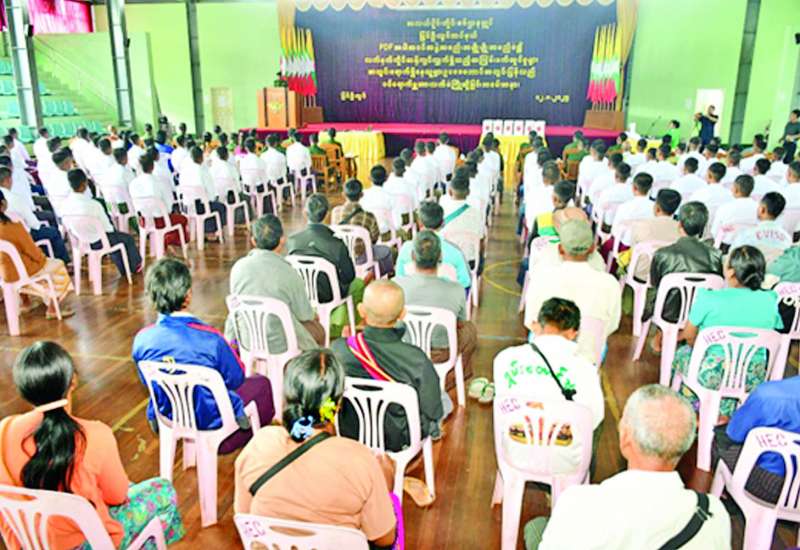နိုင်ငံတော်အစိုးရသည် PDF အပါအဝင် အဖွဲ့အစည်းအမျိုးမျိုးအမည်ခံ၍ လက်နက်ကိုင်ဆန့်ကျင်လျက်ရှိသည့် အဖွဲ့အစည်းများအတွင်း ရောက်ရှိနေသူများအား ဥပဒေဘောင်အတွင်းသို့ ပြန်လည်ဝင်ရောက်ရန် ဖိတ်ခေါ်၍ ဥပဒေဘောင်အတွင်းသို့ ပြန်လည်ဝင်ရောက်လာကြသူများကိုလည်း လိုအပ်သည့် ကူညီပံ့ပိုးမှုများ ဆောင်ရွက်ပေးလျက်ရှိရာ နိုင်ငံတော်နှင့်တပ်မတော်၏ ငြိမ်းချမ်းရေးလုပ်ငန်းစဉ်များကို နားလည်သဘောပေါက်လာသည့် တိုင်းရင်းသားလက်နက်ကိုင်အဖွဲ့များမှ အဖွဲ့ဝင်များနှင့် PDF အမည်ခံအဖွဲ့မှ အဖွဲ့ဝင် အမျိုးသား ၁၀၀ နှင့် အမျိုးသမီးလေးဦး စုစုပေါင်း ၁၀၄ ဦးသည် လက်နက်ခဲယမ်းများနှင့်အတူ ဥပဒေဘောင်အတွင်းသို့ ထပ်မံဝင်ရောက်လာကြသည်။