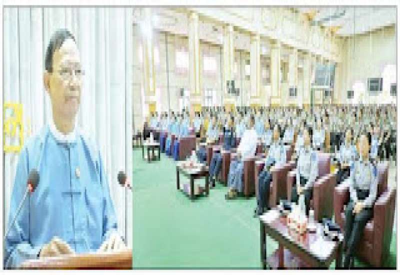 နိုင်ငံတော်လုံခြုံရေးနှင့် အေးချမ်းသာယာရေးကော်မရှင်အစည်းအဝေးကို ယနေ့နံနက်ပိုင်းတွင် ကျင်းပပြုလုပ်ရာ နိုင်ငံတော်လုံခြုံရေးနှင့် အေးချမ်းသာယာရေးကော်မရှင်ဥက္ကဋ္ဌ ဗိုလ်ချုပ်မှူးကြီး မင်းအောင်လှိုင် တက်ရောက်အမှာစကား ပြောကြားသည်။