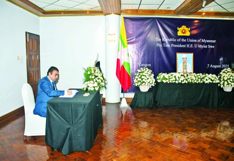 ပြည်ထောင်စုသမ္မတ မြန်မာနိုင်ငံတော်၊ ယာယီသမ္မတဦးမြင့်ဆွေသည် ဩဂုတ် ၇ ရက် တွင် ကွယ်လွန်ခဲ့သည့်အတွက် ဝမ်းနည်းကြောင်းမှတ်တမ်းစာအုပ်ကို ရန်ကုန်မြို့ စကားဝါလမ်းရှိ နိုင်ငံခြားရေးဝန်ကြီးဌာန၌ ဩဂုတ် ၈ ရက်မှစတင်၍ ဖွင့်လှစ်ထားရာ မြန်မာနိုင်ငံဆိုင်ရာသံအမတ်ကြီးများနှင့် သံရုံးအကြီးအကဲများက ဝမ်းနည်းကြောင်း လာရောက်လက်မှတ်ရေးထိုးခဲ့ကြသည်။