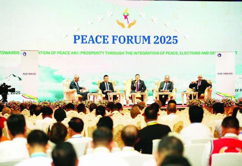 ငြိမ်းချမ်းရေးဖိုရမ် - Peace Forum 2025 “ငြိမ်းချမ်းရေး၊ ရွေးကောက်ပွဲနှင့် ဖက်ဒရယ်စနစ်တို့ပေါင်းစည်းခြင်းမှ အေးချမ်းသာယာဝပြောသည့် နိုင်ငံတော်သစ်ဆီသို့” သုံးသပ်ဆွေးနွေးပွဲ ဖွင့်ပွဲအခမ်းအနားကို ဇွန်လ ၂၅ ရက်နေ့က နေပြည်တော် မင်္ဂလာသီရိဟိုတယ်၌ကျင်းပရာ နိုင်ငံတော်စီမံအုပ်ချုပ်ရေးကောင်စီဥက္ကဋ္ဌ နိုင်ငံတော်ဝန်ကြီးချုပ် တပ်မတော်ကာကွယ်ရေးဦးစီးချုပ် အမျိုးသားစည်းလုံးညီညွတ်ရေးနှင့် ငြိမ်းချမ်းရေးဖော်ဆောင်မှုဗဟိုကော်မတီဥက္ကဋ္ဌ ဗိုလ်ချုပ်မှူးကြီး မင်းအောင်လှိုင် တက်ရောက်အမှာစကားပြောကြားခဲ့သည်။