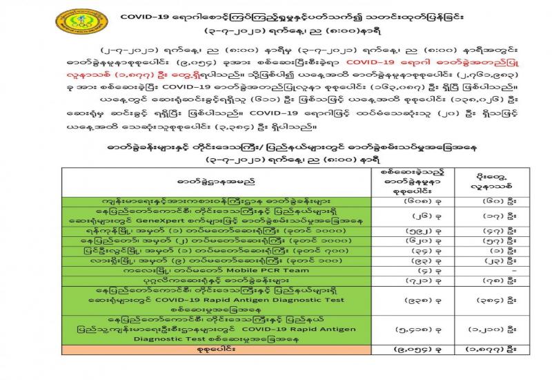 (၁-၇-၂၀၂၁)ရက်နေ့၊ ည (၈:၀၀) နာရီမှ (၂-၇-၂၀၂၁)ရက်နေ့၊ ည (၈:၀၀) နာရီအတွင်း တွေ့ရှိ ရသော COVID-19 ဓာတ်ခွဲအတည်ပြုလူနာ (၁၈၆၃) ဦး၏ မြို့နယ်အလိုက် တွေ့ရှိရမှု အခြေအနေမှာ အောက်ပါအတိုင်း ဖြစ်ပါသည် -