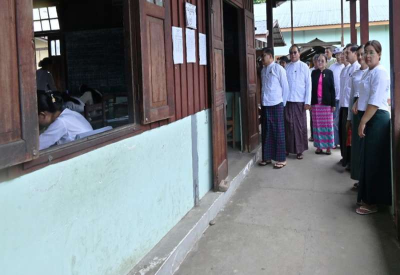 ပညာရေးဝန်ကြီးဌာန ပြည်ထောင်စုဝန်ကြီး ဒေါက်တာညွန့်ဖေသည် ဒုတိယဝန်ကြီး ဦးနေမျိုးလှိုင်၊ ဌာနဆိုင်ရာ တာဝန်ရှိသူများနှင့်အတူ ယနေ့နံနက်ပိုင်းတွင် မိတ္ထီလာမြို့အမှတ် (၁) အခြေခံပညာအထက်တန်း ကျောင်းစာစစ်ဌာန၌ ကျောင်းသား ကျောင်းသူများ တက္ကသိုလ်ဝင်စာမေးပွဲ တတိယနေ့ သင်္ချာဘာသာရပ် အေးချမ်းစွာဖြေဆိုနေမှုကို လှည့်လည်ကြည့်ရှုအားပေးပြီး လိုအပ်သည်များကို ဖြည့်ဆည်းဆောင်ရွက်ပေးသည်။