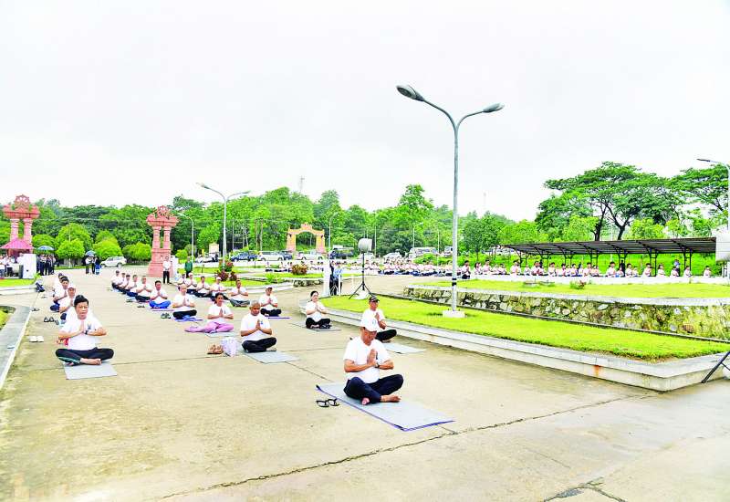 ဒုတိယဝန်ကြီးချုပ်နှင့် နိုင်ငံခြားရေးဝန်ကြီးဌာန ပြည်ထောင်စုဝန်ကြီး ဦးသန်းဆွေသည် သာသနာရေးနှင့် ယဉ်ကျေးမှုဝန်ကြီးဌာနနှင့် ရန်ကုန်မြို့အခြေစိုက် မြန်မာနိုင်ငံဆိုင်ရာ အိန္ဒိယသံရုံးတို့ ပူးပေါင်းစီစဉ်မှုဖြင့် ယနေ့နံနက် ၆ နာရီတွင် နေပြည်တော် သတ္တသတ္တာဟ မဟာဗောဓိစေတီ တော်ရင်ပြင်၌ ကျင်းပခဲ့သည့် (၁၁) ကြိမ်မြောက် အပြည်ပြည်ဆိုင်ရာယောဂနေ့ အထိမ်းအမှတ် အခမ်းအနားယောဂသရုပ်ပြ လေ့ကျင့်ခြင်းအစီအစဉ်သို့ တက်ရောက်သည်။