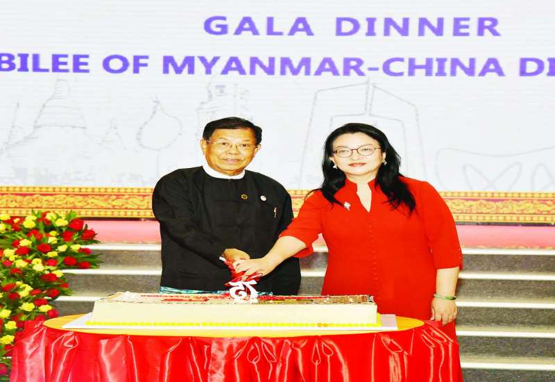 မြန်မာ-တရုတ် သံတမန်ဆက်ဆံရေး (၇၅) နှစ်မြောက် စိန်ရတုအထိမ်းအမှတ် ညစာစားပွဲအခမ်းအနားကို ယနေ့ညနေ ၆ နာရီတွင် နေပြည်တော်ရှိ မင်္ဂလာသီရိဟိုတယ်၌ ကျင်းပရာ ဒုတိယဝန်ကြီးချုပ်နှင့် နိုင်ငံခြားရေးဝန်ကြီးဌာန ပြည်ထောင်စုဝန်ကြီး ဦးသန်းဆွေ၊ ဒုတိယဝန်ကြီးချုပ်နှင့် ပြည်ထောင်စုဝန်ကြီးများ၊ ပြည်ထောင်စုအဆင့်ပုဂ္ဂိုလ်များ၊ ဒုတိယဝန်ကြီးများ၊ မြန်မာနိုင်ငံဆိုင်ရာ တရုတ်သံအမတ်ကြီး မစ္စမာကျား၊ ရန်ကုန်မြို့အခြေစိုက် နိုင်ငံခြားသံရုံးများမှ သံအမတ်ကြီးများ၊ သံရုံးအကြီးအကဲများ၊ သံတမန်များ၊ သက်ဆိုင်ရာဝန်ကြီးဌာနများမှ တာဝန်ရှိသူများနှင့် ဖိတ်ကြားထားသော ဧည့်သည်များ တက်ရောက်ကြသည်။