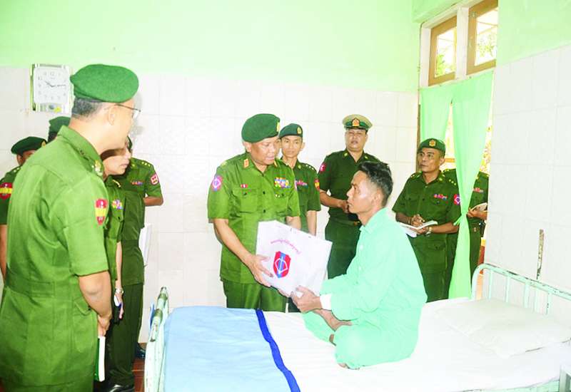 စစ်ကိုင်းတိုင်းဒေသကြီး ခန္တီးမြို့ရှိ တပ်မတော်ဆေးရုံ၌ တက်ရောက်ကုသမှုခံယူလျက်ရှိသော အရာရှိ၊ စစ်သည်၊ မိသားစုဝင်များ၊ မြန်မာနိုင်ငံရဲတပ်ဖွဲ့ဝင်များ၊ စစ်မှုထမ်းဟောင်းအဖွဲ့ဝင်များ၊ ပြည်သူ့စစ် (ဌာနေ)တပ်ဖွဲ့ဝင်များနှင့် ဒေသခံပြည်သူများအား ယနေ့မွန်းလွဲပိုင်းတွင် အနောက်မြောက်တိုင်းစစ်ဌာနချုပ်တိုင်းမှူး ဗိုလ်မှူးချုပ် မျိုးမင်းထွေးနှင့် တာဝန်ရှိသူများက သွားရောက်ကြည့်ရှု၍ တစ်ဦးချင်း၏ ရောဂါဖြစ်ပွားမှု၊ ဆေးဝါးကုသပေးထားမှုနှင့် ကျန်းမာရေးတိုးတက်ကောင်းမွန် မှုအခြေအနေများကို မေးမြန်းအားပေးစကားပြောကြားကာ အာဟာရဖြည့်စားသောက် ဖွယ်ရာများနှင့် ချီးမြှင့်ငွေများ ပေးအပ်သည်။