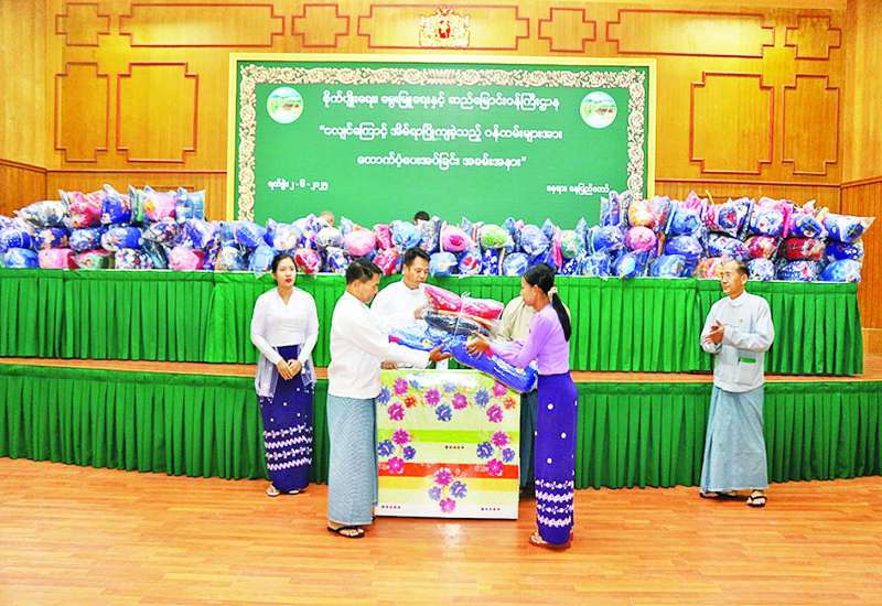 ငလျင်ကြောင့် အိမ်ရာပြိုကျခဲ့သည့် ဝန်ကြီးဌာနအောက်ရှိ ဝန်ထမ်းများအတွက် အဝတ်အထည်နှင့် အသုံးအဆောင်များ ထောက်ပံ့ပေးအပ်ခြင်းအခမ်းအနားကို ယနေ့မွန်းလွဲပိုင်းတွင် စိုက်ပျိုးရေး၊ မွေးမြူရေးနှင့် ဆည်မြောင်းဝန်ကြီးဌာန ပြည်ထောင်စုဝန်ကြီးရုံး စုဝေးဆောင်ခန်းမ၌ ကျင်းပသည်။