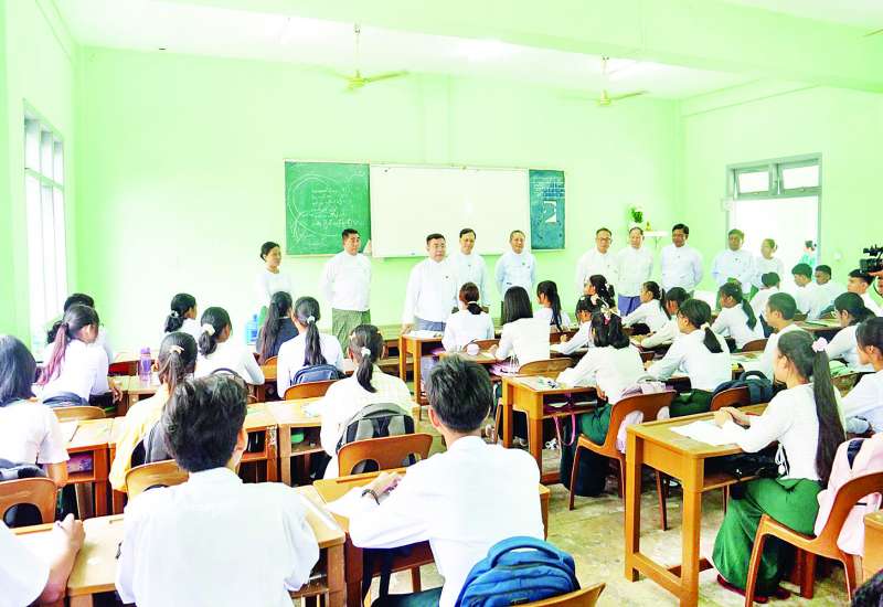 ပညာရေးဝန်ကြီးဌာန ပြည်ထောင်စုဝန်ကြီး ဒေါက်တာညွန့်ဖေသည် ဒုတိယဝန်ကြီး ဒေါက်တာဇော်မြင့်၊ ဦးနေမျိုးလှိုင်နှင့်အတူ ယနေ့နံနက်ပိုင်းတွင် နေပြည်တော်ရှိ ၂၀၂၅-၂၀၂၆ ပညာသင်နှစ် အခြေခံပညာကျောင်းများ စတင်ဖွင့်လှစ်နေမှုနှင့် ကျောင်းသား ကျောင်းသူများ အေးချမ်းစွာပညာသင်ကြားနေမှုများကို လှည့်လည်ကြည့်ရှုအားပေးကြသည်။