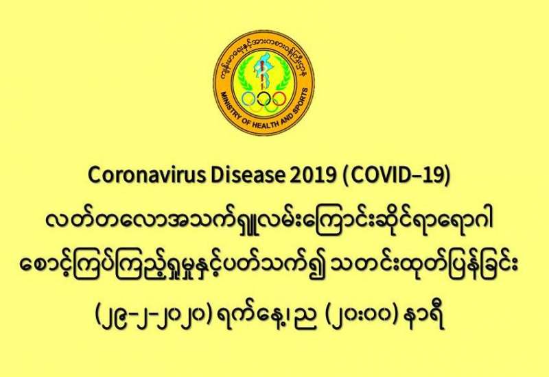 ၁။ ကျန်းမာရေးနှင့် အားကစားဝန်ကြီးဌာနသည် တရုတ်ပြည်သူ့သမ္မတနိုင်ငံနှင့် ကမ္ဘာ့နိုင်ငံအချို့တွင် ကူးစက်ပျံ့နှံ့လျက်ရှိသည့် COVID-19 လတ်တလောအသက်ရှူလမ်းကြောင်းဆိုင်ရာ ရောဂါ ဖြစ်ပွားမှု ဖြစ်စဉ်နှင့် ပတ်သက်၍ ရောဂါစောင့်ကြပ်ကြည့်ရှုခြင်း လုပ်ငန်းများအား အပြည်ပြည်ဆိုင်ရာ ဝင်ပေါက်၊ ထွက်ပေါက် ဂိတ်များတွင်လည်းကောင်း၊ ဆေးရုံအခြေပြု အဖြစ်လည်းကောင်း၊ ပြည်သူလူထုအခြေပြု စောင့်ကြပ်ကြည့်ရှုခြင်း လုပ်ငန်းများဖြင့်လည်းကောင်း၊ ပုဂ္ဂလိကဆေးရုံများနှင့် ပူးပေါင်း၍ လည်းကောင်း ဆောင်ရွက်လျက်ရှိပါသည်။