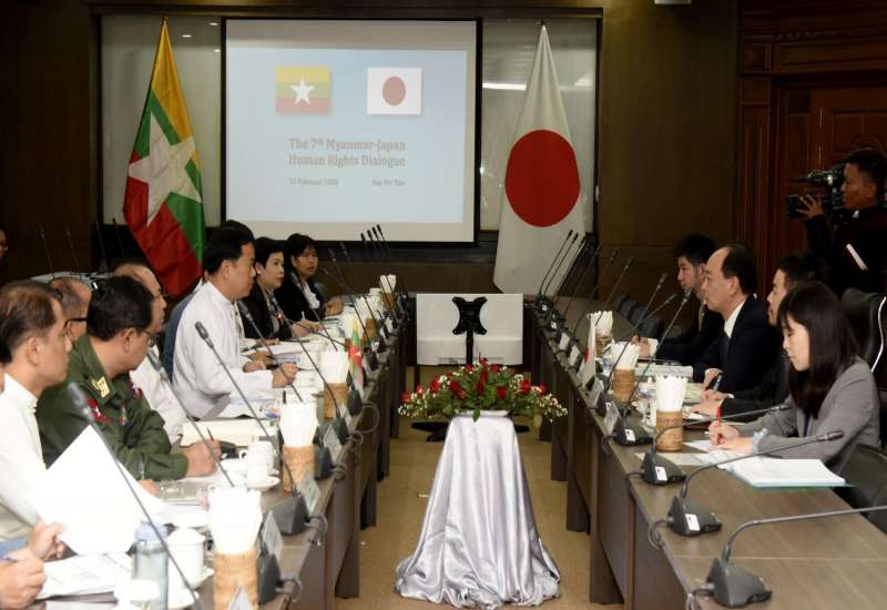 သတ္တမအကြိမ် မြန်မာ-ဂျပန် လူ့အခွင့်အရေးဆွေးနွေးပွဲကို ယနေ့နံနက်ပိုင်းက နေပြည်တော်ရှိ နိုင်ငံခြားရေးဝန်ကြီးဌာန၌ ကျင်းပသည်။