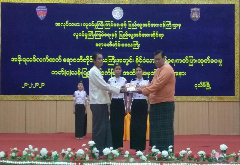 ဧရာဝတီတိုင်းဒေသကြီး ပုသိမ်မြို့တွင် အစိုးရသစ်လက်ထက် တိုင်းဒေသကြီးအတွင်း နိုင်ငံသားစိစစ်ရေးကတ်ပြား ထုတ်ပေးမှု ကတ်တစ်သန်းပြည့်မြောက်ခြင်းအထိမ်းအမှတ်အခန်းအနားကိုယနေ့နံနက်ပိုင်းကမြို့တော်ခန်းမ၌ ကျင်းပသည်။