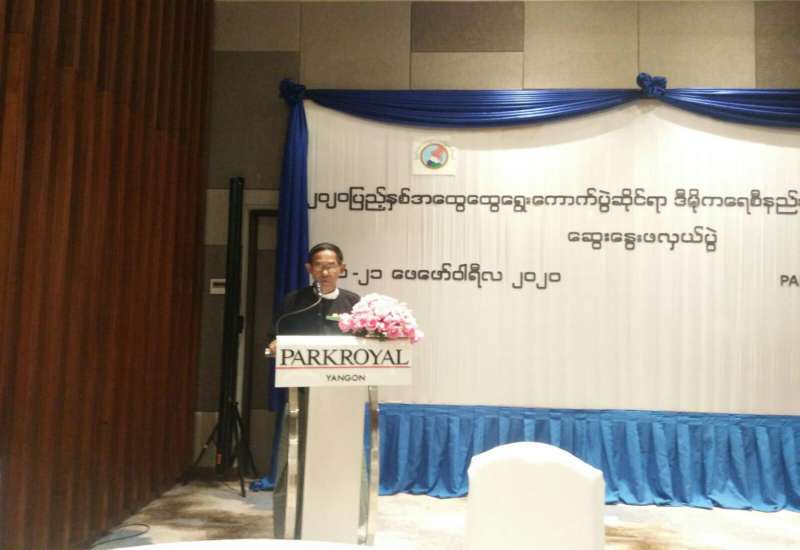 ရန်ကုန်တိုင်းဒေသကြီး ရွေးကောက်ပွဲကော်မရှင်အဖွဲ့ခွဲနှင့် အမေရိကန်ငြိမ်းချမ်းရေး အင်စတီကျူ့ (United States Institute of Peace, USIP) တို့ ပူးပေါင်းကျင်းပသော ၂၀၂၀ ပြည့်နှစ် အထွေထွေရွေးကောက်ပွဲဆိုင်ရာ ဒီမိုကရေစီနည်းကျ စီမံထိန်းကျောင်းခြင်း ဆွေးနွေးဖလှယ်ပွဲအား ယနေ့နံနက် ၉ နာရီခွဲတွင် ရန်ကုန်တိုင်း ဒေသကြီး၊ ဒဂုံမြို့နယ်၊ Park Royal Hotel ၌ ကျင်းပသည်။
