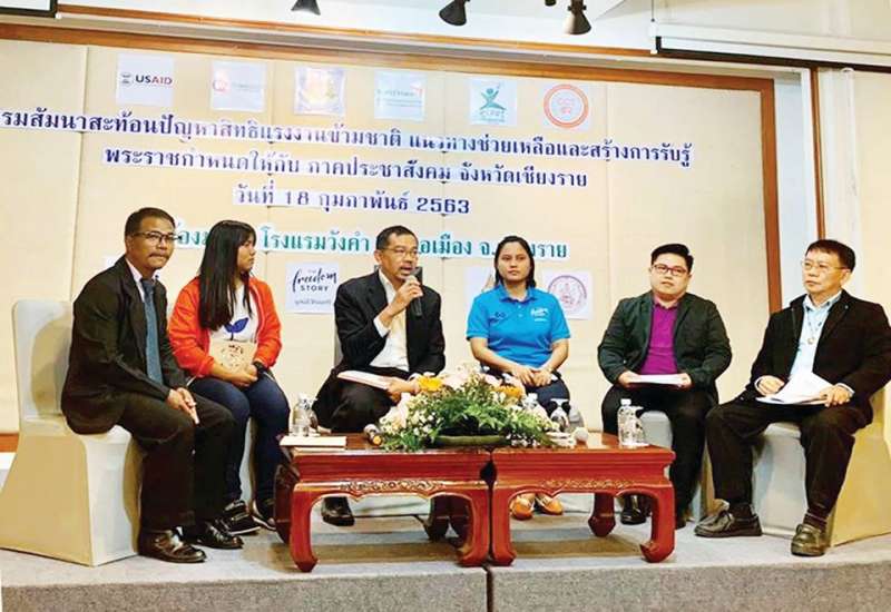 ရွှေ့ပြောင်းအလုပ်သမားများ၏ လူမှု ဖူလုံရေးနှင့် အခွင့်အရေးဆိုင်ရာ အလုပ်ရုံဆွေးနွေးပွဲကို ဖေဖော်ဝါရီ ၁၈ ရက်က ထိုင်းနိုင်ငံ (မြောက်ပိုင်း)ချိန်းရိုင်းခရိုင် Wang Come ဟိုတယ် ၌ ကျင်းပရာ ထိုင်း၊ မြန်မာ၊ လာအို၊ ကမ္ဘောဒီးယားနိုင်ငံများမှ အစိုးရ မဟုတ်သော အဖွဲ့အစည်း ၁၂ ဖွဲ့ ကိုယ်စားလှယ်များ၊ ချိန်းရိုင်း၊ မယ် ကျန့်၊ ချိန်းဆဲန်၊ မယ့်စလောင်း၊ မယ်ဆိုင်ဒေသများမှ အလုပ်ရှင်နှင့် အလုပ်သမားကိုယ်စားလှယ်များ တက်ရောက်ကြသည်။