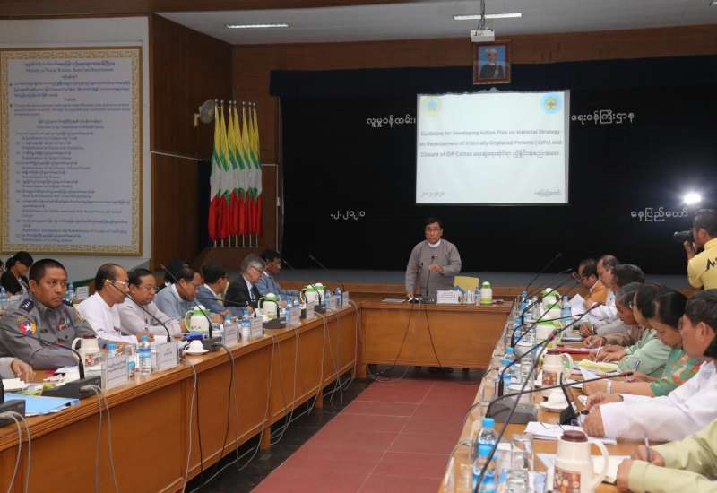ပြည်တွင်းနေရပ်စွန့်ခွာသူများ ပြန်လည်နေရာချထားရေးနှင့် ယာယီခိုလှုံရာစခန်းများ ပိတ်သိမ်းရေးဆိုင်ရာ အမျိုးသားအဆင့်မဟာဗျူဟာ နှင့်အညီ စခန်းများပိတ်သိမ်းနိုင်ရေးအတွက် စီမံချက်များ စနစ်တကျရေးဆွဲ အကောင်ထည်ဖော် ဆောင်ရွက်နိုင်ရန် လမ်းညွှန်ရေးဆွဲရေးညှိနှိုင်း အစည်းအဝေးကို ယနေ့မွန်းလွဲပိုင်းတွင် လူမှုဝန်ထမ်း၊ ကယ်ဆယ်ရေးနှင့်ပြန်လည်နေရာချထားရေး ဝန်ကြီးဌာန၌ကျင်းပသည်။