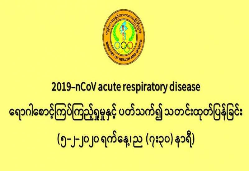 ၁။ ကျန်းမာရေးနှင့် အားကစားဝန်ကြီးဌာနသည် 2019-nCoV acute respiratory disease ရောဂါစောင့်ကြပ် ကြည့်ရှုခြင်းလုပ်ငန်းများအား အပြည်ပြည်ဆိုင်ရာ ဝင်ထွက်ဂိတ်များတွင် လည်းကောင်း၊ ဆေးရုံအခြေပြု အဖြစ်လည်းကောင်း၊ ပြည်သူလူထုအခြေပြု စောင့်ကြပ်ကြည့်ရှုခြင်း လုပ်ငန်းများဖြင့် လည်းကောင်း၊ ပုဂ္ဂလိကဆေးရုံများနှင့် ပူးပေါင်း၍လည်းကောင်း အရှိန်အဟုန်ဖြင့် ဆောင်ရွက်လျက်ရှိပါသည်။
