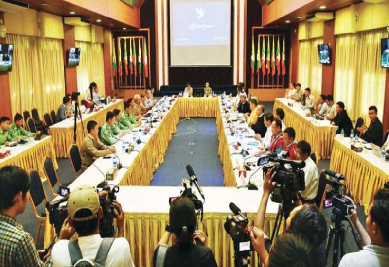 (၈) ကြိမ်မြောက် တစ်နိုင်ငံလုံး ပစ်ခတ်တိုက်ခိုက်မှုရပ်စဲရေး သဘောတူစာချုပ် အကောင်အထည်ဖော်မှုဆိုင်ရာ ညှိနှိုင်းအစည်းအဝေး (JICM) အစည်းအဝေးဆုံးဖြတ်ချက်များ အကောင်အထည်ဖော်ရေးအတွက် အစိုးရကိုယ်စားလှယ်များနှင့် NCA လက်မှတ်ရေးထိုး ထားသည့် တိုင်းရင်းသားလက်နက်ကိုင်အဖွဲ့အစည်း ကိုယ်စားလှယ်များ (NCA-S EAO) ၏ နှစ်ဖက် အလုပ်အဖွဲ့ညှိနှိုင်းအစည်းအဝေး ဒုတိယနေ့ကို ယနေ့ နံနက် ၁၀ နာရီက ရန်ကုန်မြို့၊ ရွှေလီလမ်းရှိ အမျိုးသားပြန်လည် သင့်မြတ်ရေးနှင့် ငြိမ်းချမ်းရေးဗဟိုဌာန (NRPC) ၌ ကျင်းပသည်။