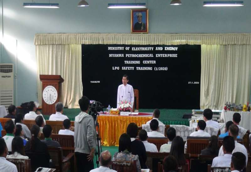 လျှပ်စစ်နှင့်စွမ်းအင်ဝန်ကြီးဌာန၊ မြန်မာ့ရေနံဓာတုဗေဒလုပ်ငန်းမှ ဖွင့်လှစ်သည့်ရေနံ ဓာတ်ငွေ့ရည် တင်သွင်း သိုလှောင် ဖြန့်ဖြူးရောင်းချခြင်းလုပ်ငန်းများ ဆောင်ရွက်ရာတွင် စနစ်တကျနှင့် ဘေးအန္တရာယ် ကင်းရှင်းစွာ ဆောင်ရွက်နိုင်ရန်အတွက် L.P.G SAFETY TRAINING သင်တန်းအမှတ်စဉ် (၁/၂၀၂၀) ဖွင့်ပွဲအခမ်းအနားကို ယမန်နေ့နံနက် ၈ နာရီတွင် ရန်ကုန်တိုင်းဒေသကြီး၊ အမှတ် (၁) ရေနံချက်စက်ရုံ (သန်လျင်) ၌ကျင်းပသည်။