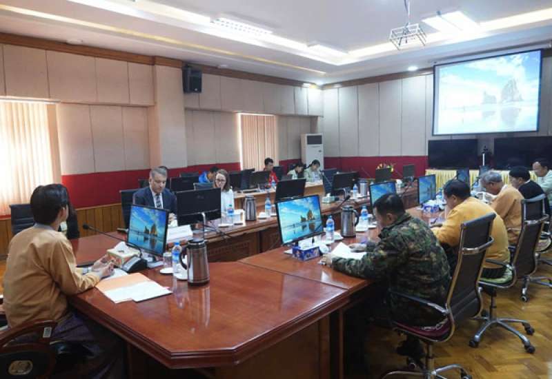 ကယားပြည်နယ်အတွင်းရှိ ဆွစ်ဇာလန်နိုင်ငံမှ အထောက်အပံ့ဖြင့် အကောင်အထည်ဖော် ဆောင်ရွက်လျက် ရှိသည့် Humanitarian Mine Action ဆိုင်ရာ ကိစ္စရပ်များ၊ ဆွစ်ဇာလန် အစိုးရမှ အထောက်အပံ့များ ပေးအပ်လိုသည့် ကိစ္စရပ်များနှင့် စပ်လျဉ်း၍ ဆွေးနွေးဆောင်ရွက်နိုင်ရန်အတွက် ကယားပြည်နယ် အစိုးရအဖွဲ့ ပြည်နယ်ဝန်ကြီးချုပ် ဦးအယ်လ်ဖောင်းရှိုနှင့် တာဝန်ရှိ သူတို့အား ယနေ့နံနက် ၈ နာရီခွဲက ရန်ကုန်မြို့ရှိ ဆွစ်ဇာလန် သံရုံးမှ သံအမတ် Mr . Thierry Umbehr နှင့် အဖွဲ့တို့က လာရောက် တွေ့ဆုံသည်။