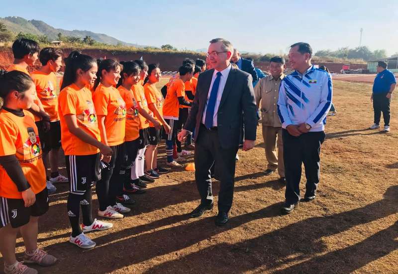 အမေရိကန်သံရုံးနှင့် မြန်မာနိုင်ငံဘောလုံးအဖွဲ့ချုပ်တို့ ပူးပေါင်းကျင်းပသော Community Champions Follow- UPS, Soccer, Clinic ဘောလုံးသင်တန်းဖွင့်ပွဲကို ယမန်နေ့ ညနေ ၃ နာရီက ရှမ်းပြည်နယ်(တောင်ပိုင်း)၊ တောင်ကြီးမြို့နယ်၊ အေးသာယာမြို့၊ သစ်ပင်ထောင်ရပ်ကွက်ရှိ အားကစားနှင့် ကာယပညာသိပ္ပံ(တောင်ကြီး)ကျောင်း၌ ကျင်းပသည်။