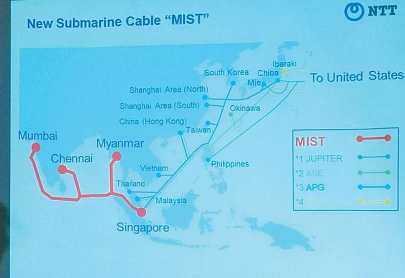 ကမ္ဘာ့ထိပ်တန်းနည်းပညာ ဝန်ဆောင်မှုလုပ်ငန်းစု ကြီးဖြစ်သော NTT Ltd က အမေရိကန်ဒေါ်လာ သန်း ၄၀၀ ရင်းနှီးမြှုပ်နှံ၍ စင်ကာပူ-မြန်မာ-အိန္ဒိယ (မွန်ဘိုင်းနှင့် ချန်နိုင်း) သုံးနိုင်ငံအကြား စွမ်းအားမြင့် ရေအောက်ကေဘယ်(MIST) ကို စတင်တည်ဆောက် နေပြီဖြစ်ကြောင်း ယနေ့ဆူးလေရှန်ဂီလာ၌ ကျင်းပ သော စာနယ်ဇင်းရှင်းလင်းပွဲမှ သိရသည်။