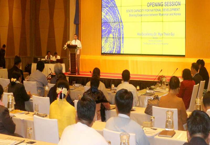 မြန်မာနိုင်ငံနှင့် တောင်ကိုရီးယားနိုင်ငံတို့မှ တက္ကသိုလ်များ၊ အစိုးရအဖွဲ့အစည်းများကြား နိုင်ငံဖွံ့ဖြိုးတိုးတက်ရေးမူဝါဒဆိုင်ရာ သုတေသနုကွန်ရက်တည်ထောင်ရန်နှင့် အတွေ့အကြုံပညာရပ်များ ဖလှယ်ရန်ရည်ရွယ်ကျင်းပသည့် အလုပ်ရုံဆွေးနွေးပွဲကို ယနေ့ နံနက် ၉ နာရီခွဲက နေပြည်တော်ရှိ Hilton Hotel တွင် ကျင်းပသည်။