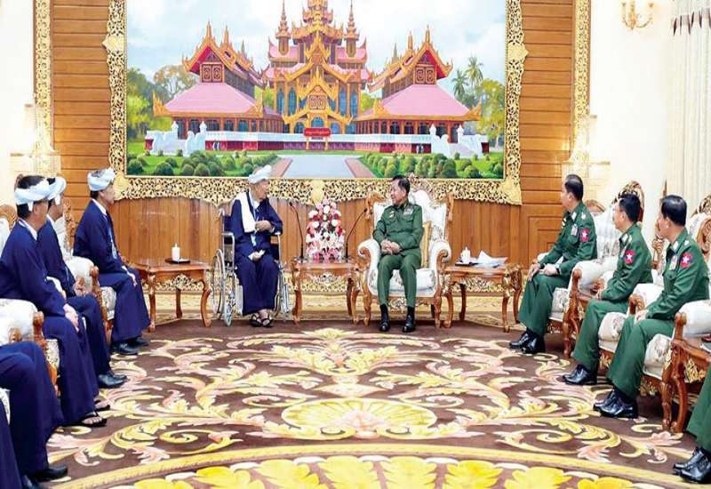 တပ်မတော်ကာကွယ်ရေးဦးစီးချုပ် ဗိုလ်ချုပ်မှူးကြီး မင်းအောင်လှိုင်သည် ပအိုဝ်းငြိမ်းချမ်းရေးအဖွဲ့ (PNO) အသွင်ပြောင်းပြည်သူ့စစ်(ဌာနေ)အဖွဲ့ဥက္ကဋ္ဌ ဦးအောင်ခမ်းထီနှင့် အဖွဲ့ဝင်များအား ယနေ့နံနက်ပိုင်းတွင် နေပြည်တော်ရှိ ဘုရင့်နောင်ရိပ်သာ ဧည့်ခန်းမဆောင်၌ လက်ခံတွေ့ဆုံ၍ ပအိုဝ်းကိုယ်ပိုင်အုပ်ချုပ်ခွင့်ရဒေသ ဖွံ့ဖြိုးတိုးတက်ရေးဆိုင်ရာ ကိစ္စရပ်များအား ဆွေးနွေးသည်။
