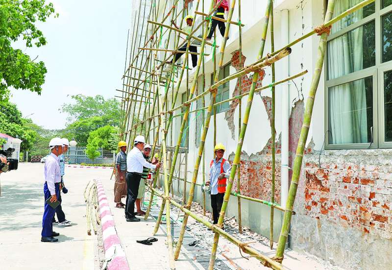 သာသနာရေးနှင့် ယဉ်ကျေးမှုဝန်ကြီးဌာန ပြည်ထောင်စုဝန်ကြီး ဦးတင်ဦးလွင်သည် ဒုတိယဝန်ကြီး ဦးအေးထွန်း၊ ဒေါ်နုမြဇံ၊ အမြဲတမ်းအတွင်းဝန်၊ ညွှန်ကြားရေးမှူးချုပ်များ၊ တာဝန်ရှိသူများနှင့်အတူ ယနေ့နံနက်ပိုင်းတွင် ငလျင်ဒဏ်သင့်ခဲ့သည့် ပျက်စီးမှုအနည်းငယ်ရှိသော အပြာရောင်အဆင့်ရှိ တိုက်အမှတ် ၁၁၁၂၊ တိုက်အမှတ် ၂၃၁၀၄၊ တိုက်အမှတ် ၃၃၁၁၃ တို့သို့သွားရောက်၍ အပေါ်ယံအင်္ဂတေ ကွာကျမှုအခြေအနေများ၊ အသေးစားပြန်လည် ပြင်ဆင်ရန်လိုအပ်မှုအခြေအနေများ၊ လျှပ်စစ်မီးရရှိမှု၊ ရေရှိမှုအခြေအနေများကို ကြည့်ရှုစစ်ဆေးပြီး လိုင်စင်ရအင်ဂျင်နီယာဖြင့် စနစ်တကျစစ်ဆေးပြုပြင်မှုများ အမြန်ဆောင်ရွက်ရန်၊ လျှပ်စစ်မီးမရရှိသေး သည့် တိုက်အမှတ် ၂၃၁၀၄ တွင် လျှပ်စစ်မီးရရှိရေး၊ ရေမရရှိသေးသည့်တိုက်များသို့ ရေကားများဖြင့် ရေဖြန့်ဝေပေးရေးတို့ကို အမြန်စီမံဆောင်ရွက်သွားရန် တာဝန်ရှိသူများအား မှာကြားသည်။