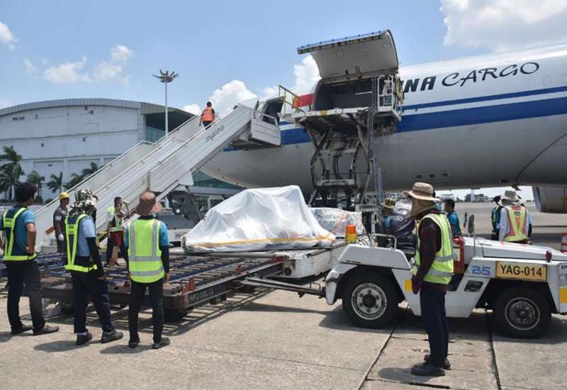 မြန်မာနိုင်ငံတွင်ဖြစ်ပွားခဲ့သည့် မန္တလေးမြေငလျင်ကြီးကြောင့် ထိခိုက်ခံစားခဲ့ရသောငလျင်ဒဏ်သင့် ဒေသများအတွက် တရုတ်ပြည်သူ့သမ္မတနိုင်ငံမှ လူသားချင်း စာနာထောက်ထားမှုဆိုင်ရာ အကူအညီပစ္စည်းများတင်ဆောင်လာသော Air China Cagro လေယာဉ်သည်အဋ္ဌမအကြိမ်အဖြစ် ယနေ့မွန်းလွဲပိုင်းတွင် ရန်ကုန်မြို့သို့ရောက်ရှိသည်။
