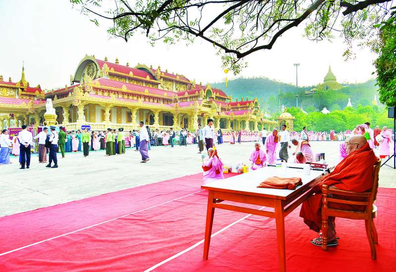 ၂၀၂၅ ခုနှစ်၊ သာသနာတော်ဆိုင်ရာ ဘွဲ့တံဆိပ်တော် ဆက်ကပ်ခံယူတော်မူမည့် ဆရာတော်ကြီးများအား နိုင်ငံတော်စီမံအုပ်ချုပ်ရေးကောင်စီဥက္ကဋ္ဌ နိုင်ငံတော်ဝန်ကြီးချုပ် ဗိုလ်ချုပ်မှူးကြီးမင်းအောင်လှိုင်နှင့်ဇနီး ဒေါ်ကြူကြူလှတို့က ယနေ့နံနက်ပိုင်းတွင် နေပြည်တော်မာရဝိဇယဗုဒ္ဓဥယျာဉ်တော် ပရိဝုဏ်အတွင်းရှိ အဂ္ဂါဓိပတိသာသနာ့ဗိမာန်တော်ကြီး၌ နေ့ဆွမ်းဆက်ကပ်လှူဒါန်းသည်။