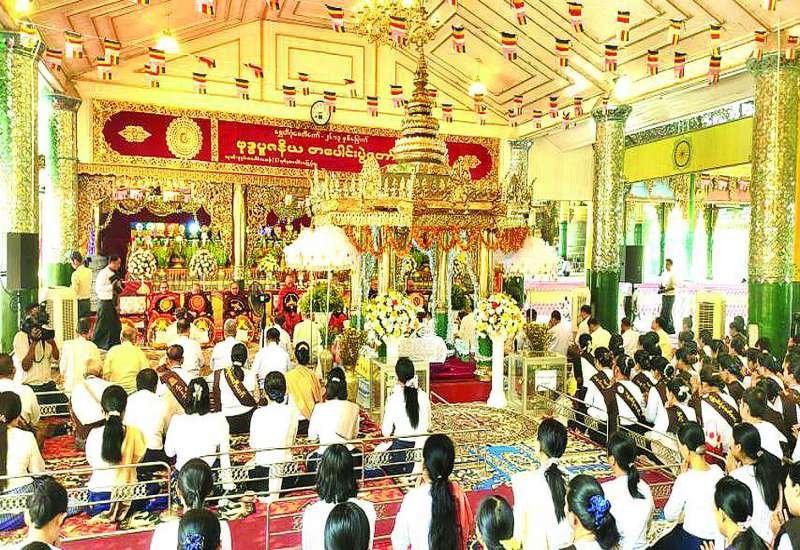 ရွှေတိဂုံစေတီတော် (၂၆၁၃) နှစ် မြောက် ဗုဒ္ဓပူဇနိယ တပေါင်းပွဲတော်ဖွင့်ပွဲနှင့် နှစ်ကျိပ်ရှစ်ဆူ ဘုရားလှည့်လည်ပူဇော်ပွဲ အခမ်းအနားကို ယနေ့နံနက်ပိုင်းတွင် ရွှေတိဂုံစေတီရင်ပြင်တော် ရာဟုထောင့် ချမ်းသာကြီးတန်ဆောင်း၌ ကျင်းပသည်။