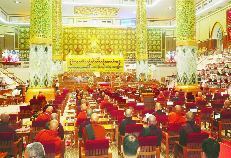 နဝမအကြိမ် နိုင်ငံတော်ဗဟိုသံဃာ့ဝန်ဆောင်အဖွဲ့ ပထမအစည်းအဝေးကို ယနေ့နံနက် ၈ နာရီတွင် ရန်ကုန်တိုင်းဒေသကြီး မရမ်းကုန်းမြို့နယ် သီရိမင်္ဂလာကမ္ဘာအေးကုန်းမြေ ဆဋ္ဌသင်္ဂါယနာ မဟာပါသာဏလိုဏ်ဂူသိမ်တော်ကြီး၌ ကျင်းပသည်။