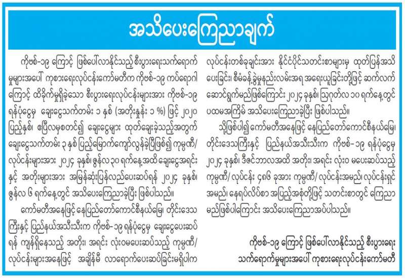 စီးပွားရေးနှင့် ကူးသန်းရောင်းဝယ်ရေးဝန်ကြီးဌာန စားသုံးဆီတင်သွင်းသိုလှောင်ဖြန့်ဖြူးခြင်း လုပ်ငန်းကြီးကြပ်ရေးကော်မတီအနေဖြင့် စားအုန်းဆီကမ္ဘာ့ဈေးနှုန်း ဖြစ်ပေါ်ပြောင်းလဲမှုနှင့်အညီ ပြည်တွင်း၌ဖြစ်သင့်ဖြစ်ထိုက်သည့် ဈေးနှုန်းများဖြစ်ပေါ်စေရေး ထိန်းကျောင်းဆောင်ရွက်လျက်ရှိပြီး စားအုန်းဆီ အဓိကထုတ်လုပ်တင်ပို့သည့် မလေးရှားနိုင်ငံတွင်ဖြစ်ပေါ်နေသည့် FOB ဈေးနှုန်းများကို နေ့စဉ်စောင့်ကြည့်ကာ သယ်ယူပို့ဆောင်ခကုန်ကျစရိတ်များ၊ ဘဏ်စရိတ်များ၊ အခွန်အခများ ထည့်သွင်းတွက်ချက်၍ ပြည်တွင်းဈေးကွက်၌ ရောင်းဝယ်ဖောက်ကားရမည့် အခြေခံလက်ကား ရည်ညွှန်းဈေးနှုန်းကို ထုတ်ပြန်ပေးလျက်ရှိသည်။
