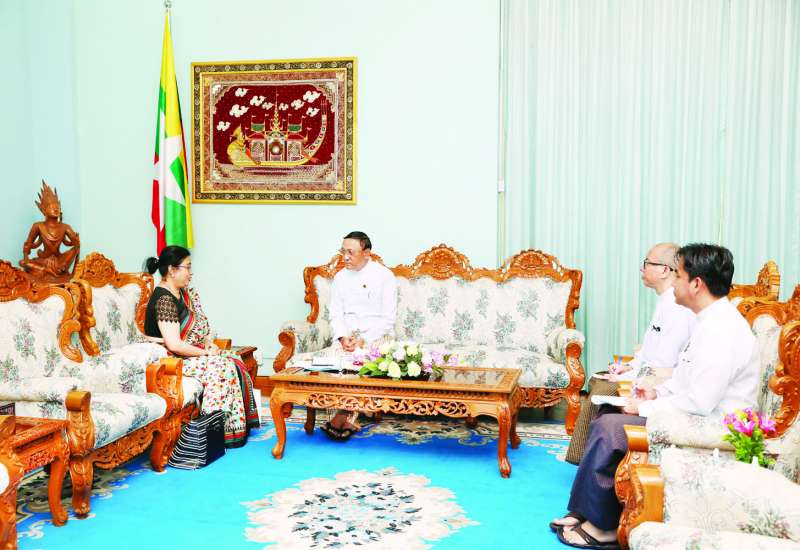 ကျန်းမာရေးဝန်ကြီးဌာန ပြည်ထောင်စုဝန်ကြီး ဒေါက်တာသက်ခိုင်ဝင်းအား ပေကျင်းဟုန်ဖန်းရင်းနှီးမြှုပ်နှံမှုကုမ္ပဏီလီမိတက်မှ Mr. Zhou Xiaofeng ဦးဆောင်သည့် ကိုယ်စားလှယ်အဖွဲ့သည် ယနေ့မွန်းလွဲပိုင်းတွင် ကျန်းမာရေးဝန်ကြီးဌာန အစည်းအဝေးခန်းမ၌ လာရောက်တွေ့ဆုံသည်။