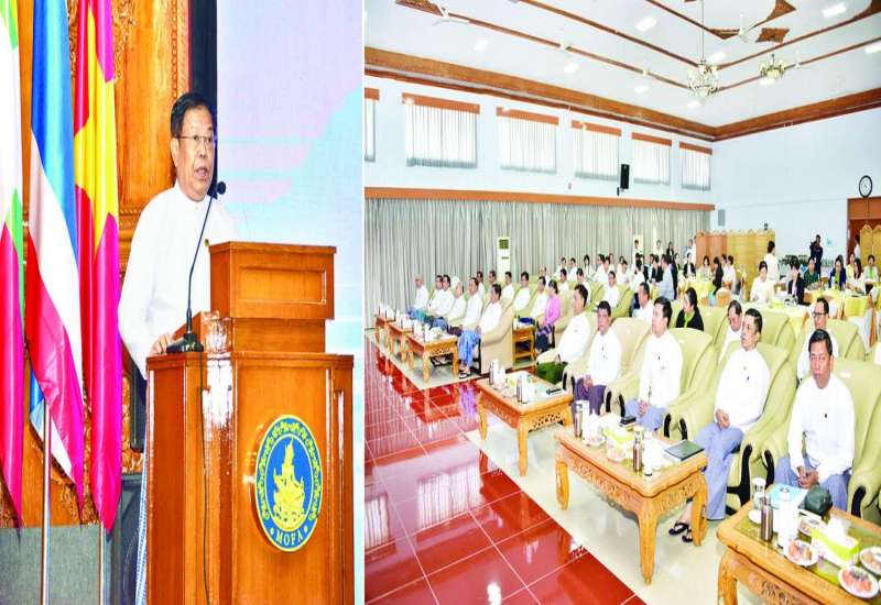 ဧရာဝတီ - ကျောက်ဖရား - မဲခေါင် စီးပွားရေးပူးပေါင်းဆောင်ရွက်မှု မဟာဗျူဟာ (အက်ခ်မက်) အလှည့်ကျဥက္ကဋ္ဌတာဝန် အောင်မြင်စွာထမ်းဆောင်နိုင်ရေး ဝန်ကြီးဌာနများ၏ အခန်းကဏ္ဍနှင့် ပေါင်းစပ်ညှိနှိုင်းမှုမြှင့်တင်ရေး အလုပ်ရုံဆွေးနွေးပွဲကို ယနေ့တွင် နိုင်ငံခြားရေးဝန်ကြီးဌာန လောကနတ်ခန်းမ၌ ကျင်းပသည်။