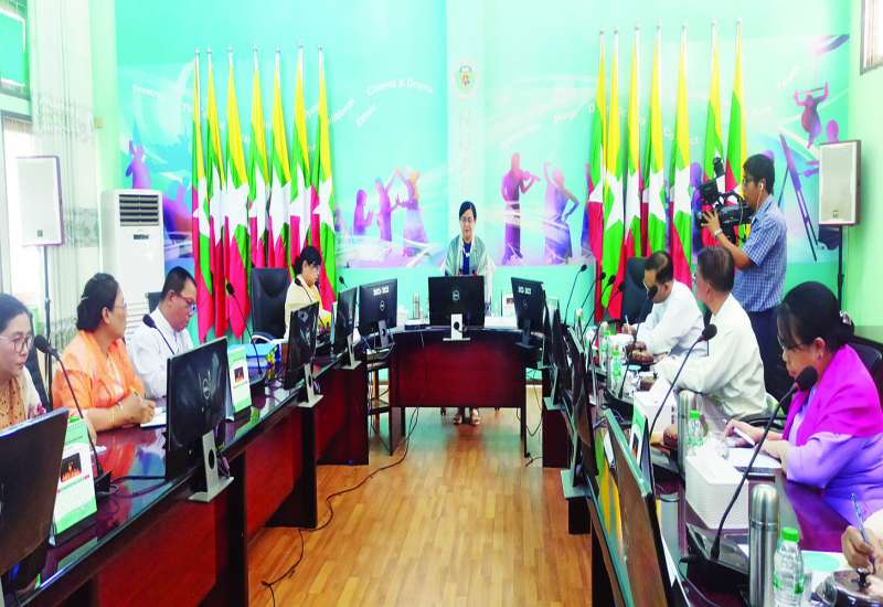 မြန်မာနိုင်ငံတိုင်းရင်းသားလူမျိုးများ၏ အမျိုးသားဝတ်စုံမှန်သတ်မှတ်ရေးအစည်းအဝေးကို ယနေ့မွန်းလွဲပိုင်းတွင် ဒဂုံမြို့သစ်တောင်ပိုင်း အမျိုးသားယဉ်ကျေးမှုနှင့် အနုပညာတက္ကသိုလ် (ရန်ကုန်) ရှိ စွယ်တော်ဆောင်အစည်းအဝေးခန်းမ၌ ကျင်းပရာ ဒုတိယဝန်ကြီး ဒေါ်နုမြဇံ တက်ရောက်သည်။