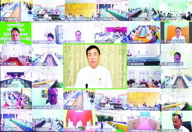 ပညာရေးဝန်ကြီးဌာန ပြည်ထောင်စုဝန်ကြီး ဒေါက်တာညွန့်ဖေနှင့် တက္ကသိုလ်ပါမောက္ခချုပ်များ၊ ပါမောက္ခများ၊ တိုင်းဒေသကြီးနှင့် ပြည်နယ်ပညာရေးမှူးများတွေ့ဆုံပွဲကို ယနေ့နံနက်ပိုင်းတွင် နေပြည်တော်ပညာရေးဝန်ကြီးဌာန ရုံးအမှတ်(၁၃)ရှိ အစည်းအဝေးခန်းမ၌ ကျင်းပသည်။