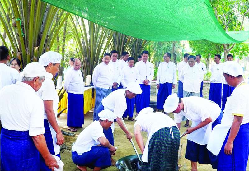 စက်မှုဝန်ကြီးဌာန ဝန်ထမ်းများ၏ စုပေါင်းထမနဲထိုးပွဲကို ယနေ့နံနက်ပိုင်းတွင် စက်မှုဝန်ကြီးဌာန ရုံးအမှတ်(၃၇) ထီး(၃)လက်ဘုရားကုန်း၌ ကျင်းပပြုလုပ်ရာ ပြည်ထောင်စုဝန်ကြီး ဒေါက်တာ ချာလီသန်း၊ ဒုတိယဝန်ကြီး ဦးရင်မောင်ညွန့်၊ ညွှန်ကြားရေးမှူးချုပ်များ၊ ဦးဆောင်ညွှန်ကြားရေးမှူးများ၊ ဒုတိယအမြဲတမ်းအတွင်းဝန်၊ ဒုတိယညွှန်ကြားရေးမှူးချုပ်၊ အထွေထွေမန်နေဂျာများနှင့် ဝန်ထမ်းများ တက်ရောက်ကြည့်ရှုအားပေးသည်။