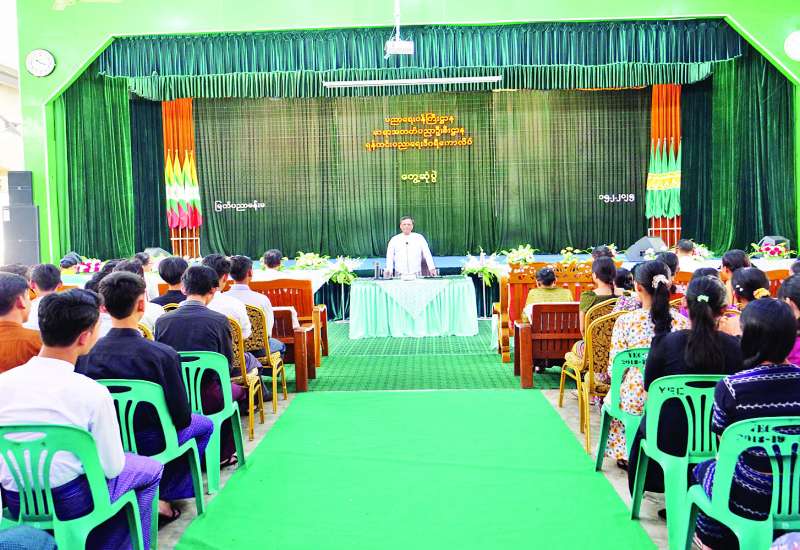 လယ်ယာသုံးစက်ကိရိယာပစ္စည်းများ အဆင့်မြှင့်တင်ထုတ်လုပ်နိုင်ရေး ညှိနှိုင်းအစည်းအဝေးကို ယနေ့နံနက်ပိုင်းတွင် ပြည်ထောင်စုအဆင့် MSME ထုတ်ကုန်ပြပွဲနှင့်ပြိုင်ပွဲ ကျင်းပသည့် တပေါင်းကွင်း ယာယီကွပ်ကဲရေးရုံး၌ ကျင်းပသည်။
